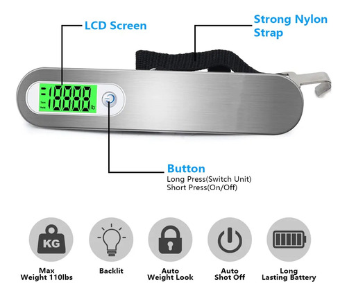 Báscula Digital De Equipaje 50 Kg Pantalla Lcd Retroiluminad Color