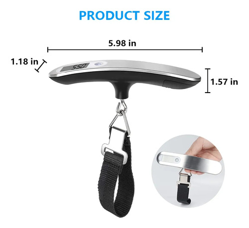 USO SENCILLO: Sólo coloca la báscula en tu mano y la correa en tu equipaje, levanta la báscula y te marcará el peso exacto de tu maleta.