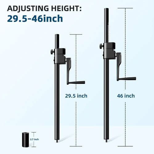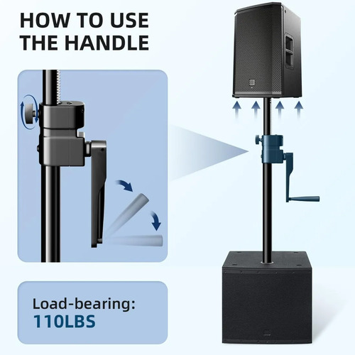 Estable: La altura se ajusta utilizando un pomo de ajuste y se refuerza aún más con un pasador de bloqueo incluido para garantizar un soporte seguro y confiable para el altavoz