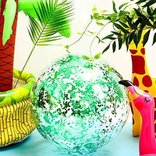 Hsei 3 Pieces Inflatable Beach Ball Glitter Beach Ball Floatable Confetti Ball for Summer Beach, Pool and Party Favor