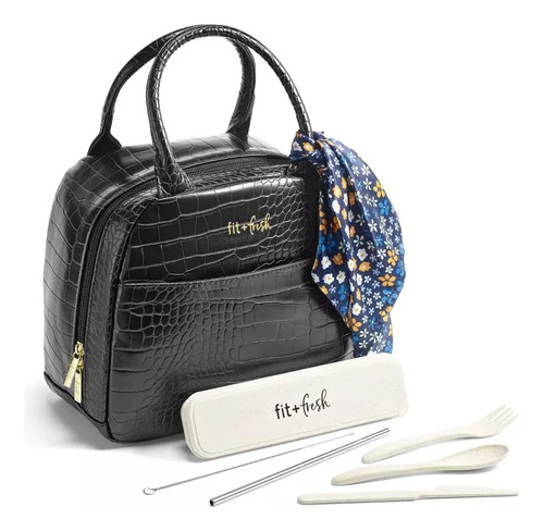 Fit & Fresh Lyon – Bolsa de almuerzo moderna con utensilios de viaje para mujeres, bolsa de almuerzo aislada para el trabajo, a prueba de fugas y resistente a las manchas para mujeres, piel de
