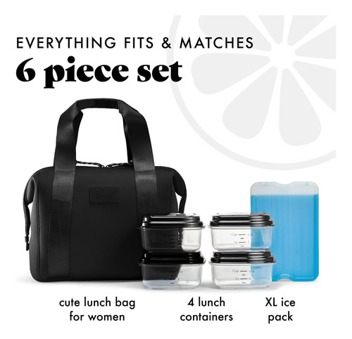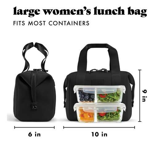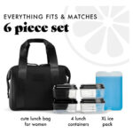 Fit & Fresh Remi – Bolsa de almuerzo de neopreno para mujer, kit de preparación de comidas con contenedores y paquete de hielo XL, material autoaislante, tipo neopreno, bolsa de almuerzo lavable a