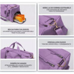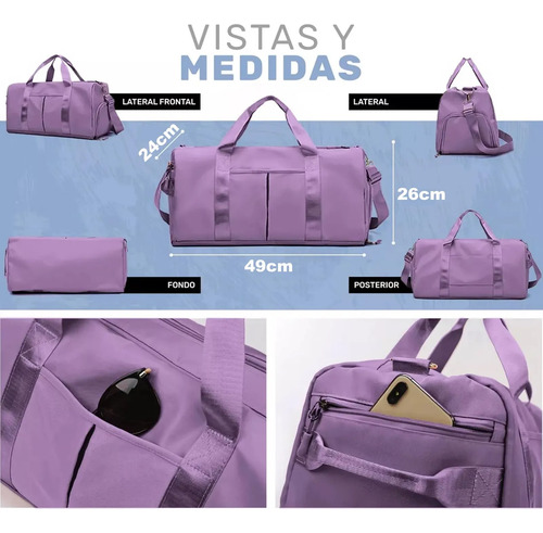 Compartimento separado para zapatosLa bolsa de deporte tiene un compartimento separado para zapatos que se adapta a la mayoría de los tamaños de calzado. Bolsa de viaje permite poner zapato en un bolsillo separado impermeable para evitar ensuciar la ropa u otros artículos y mantenga la bolsa limpia. El compartimento para zapatos tiene mucho espacio se puede poner en dos zapatos al mismo tiempo. También con orificios de ventilación para airear y desodorizar.