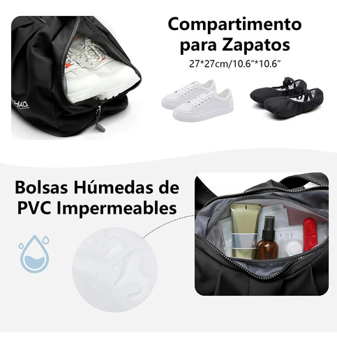 Bolsa de Gimnasio, Bolsas Deportivas para Mujer, con Compartimento y Impermeable, Maleta Gym Mujer, Mochila Gym Mujeres, Deporte, Natación, Yoga, Fitness, Entrenamiento, Etc (Negro)