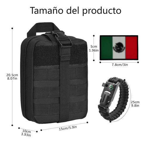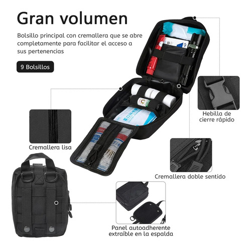 Correa Molle EstáNdarCuenta con broches resistentes que le permiten conectar esta bolsa médica a cualquier dispositivo compatible con MOLLE (para cinturones, chalecos o mochilas), lo que la convierte en la mejor opción para los entusiastas de las aventuras al aire libre.