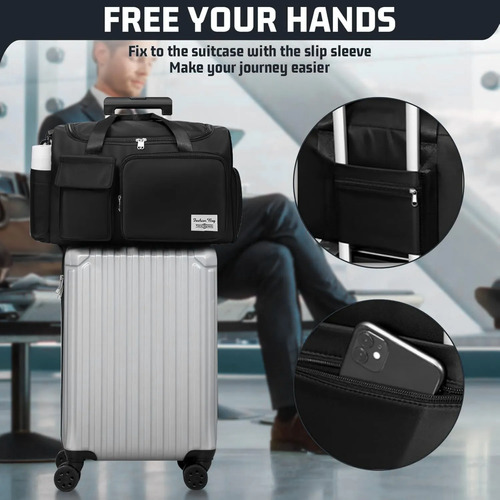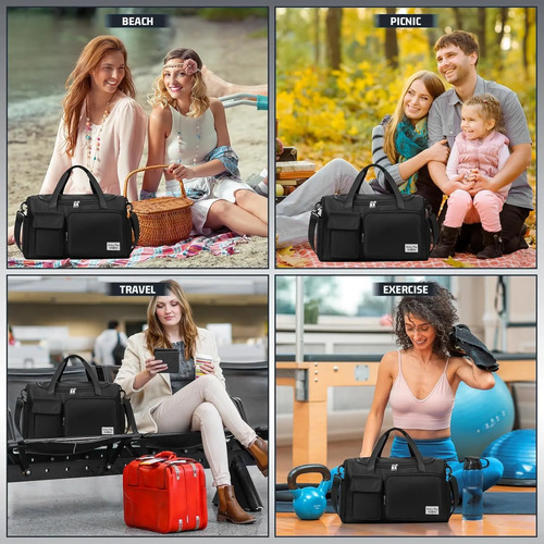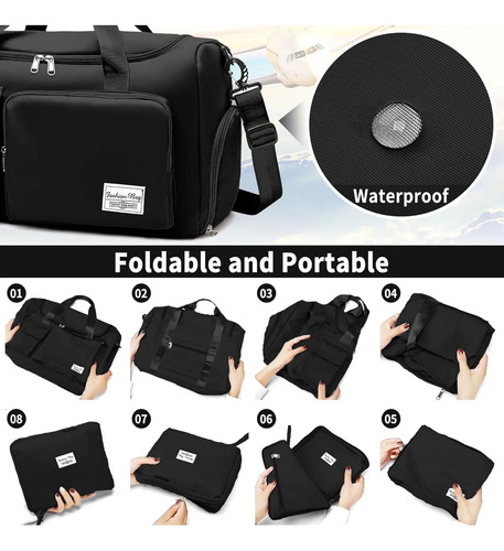 Cómodo y portátilLa correa cómoda y ajustable está unida por ganchos resistentes y desmontables. Esta bolsa de viaje plegable se puede llevar a mano, en un hombro o cruzada. Las asas de cincha suave y gruesa proporcionan una experiencia de transporte cómoda. La correa trasera de equipaje puede deslizarse sobre la maleta o el asa de equipaje, liberando sus manos y hombro. Con espacio suficiente para guardar ropa, toallas, zapatos, accesorios deportivos y más, es la bolsa ideal para actividades como fitness, yoga, natación, o viajes cortos.