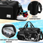 ANNA TOSANI Bolsa Fitness Maleta Deporte, Bolsa Deporte con Compartimentos para Zapatos y Bolsillo Húmedo para Hombre y Mujer Bolsa de Viaje Grande Deporte Bolsa Gimnasio Plegable Natación (Negro)
