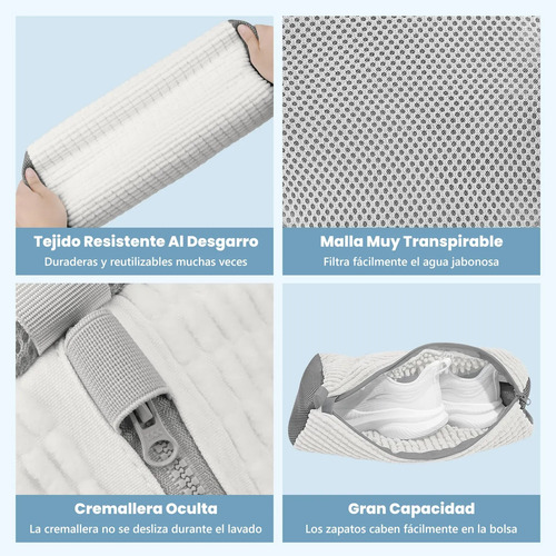 2 Bolsa de Lavandería para Zapatos,Bolsas para Lavar Tenis en Lavadora Extra Grandes,Limpieza de 360o y Reutilizable,con 4 Horma Zapatos Ajustable,Shoe Laundry Bag para Zapatos de Gimnasio,Pantuflas