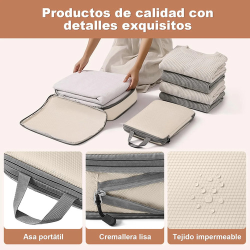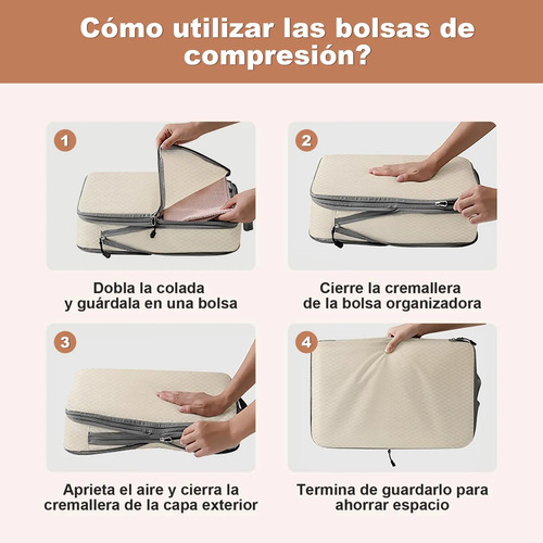 Empaque más cosas en menos espacio¡Una excelente opción para ahorrar espacio que puede contener más artículos El organizador de viaje que ahorra espacio está diseñado con una cremallera de compresión. Dobla y aplana la ropa. Después de cerrar la cremallera, cierra la cremallera adicional para ahorrar tanto espacio como sea posible.