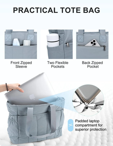 Bolsa Tote Mujer, VASCHY Puffer Tote Bag Bolsas de Mujer Bolsa de Laptop para Trabajo/Profesores/Viajes, Azul