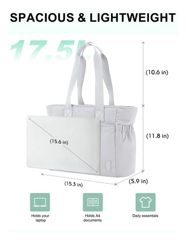 Bolsa Tote Mujer, VASCHY Bolsas de Mujer Tote Bag Bolsa de Laptop para Trabajo/Profesores/Viajes, Blanco