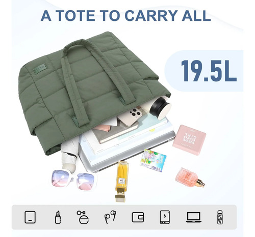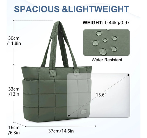 Bolsa Tote Mujer Casual Ligera Acolchada 37x16x33 Cm Verde Diseño De La Tela Acabado De Los Herrajes Color De La Correa De Hombro