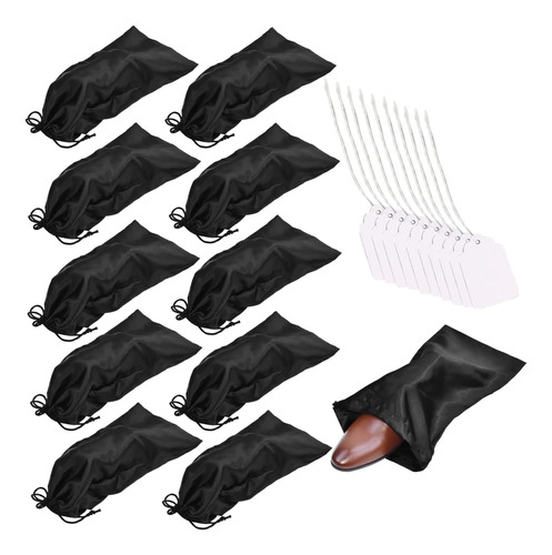GONGKANGYUAN Paquete de 10 bolsas para zapatos de viaje de tela de satén con cordón para hombres y mujeres, protección de viaje, Negro -, Bolsa de polvo para bolsa de zapatos