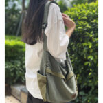 Bolso bandolera grande de lona con múltiples bolsillos para hombres y mujeres, bolso bandolera para portátil