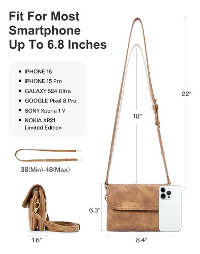 Tamaño perfecto y ligero: nuestros bolsos cruzados miden 8.4 pulgadas de largo x 1.6 pulgadas de ancho x 6.3 pulgadas de alto y vienen con una correa larga desmontable y ajustable (rango de longitud de 38.2 a 48 pulgadas). Se convertirá en una portafolios compacta con la correa quitada.