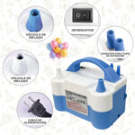 Bomba de Globo de Aire Eléctrica con 2 Anudador, 600W Maquina para Inflar Globos Electrica de Doble Boquilla, para Decoraciones de Cumpleaños, Bodas, Fiestas
