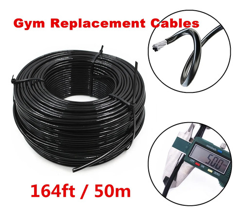 El grosor del cable es de 5 mm, longitud de 50 m, incluye el revestimiento negro. Antideslizante, resistente al desgaste e inodoro. Se puede cortar para ajustar la leng