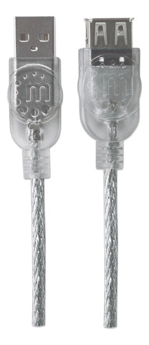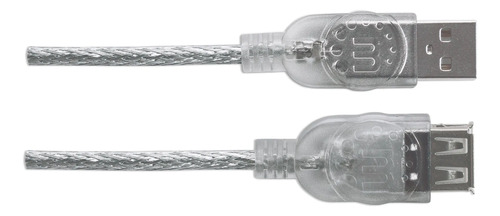 Manhattan CABITL130 Cable USB, Extensión, 4, 5 m, USB A, USB A, Macho/Hembra, Transparente