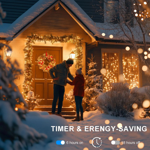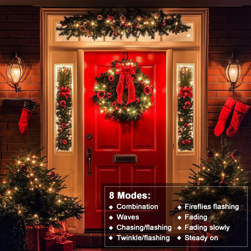 Control remoto: : Temporizador (6 horas encendidas, 18 horas apagadas) : Ajustes de brillo : 8 modos de iluminación: combinación, en onda, secuencial, brillo lento, persecución/flash, desvanecimiento lento, centelleo/flash, encendido constante