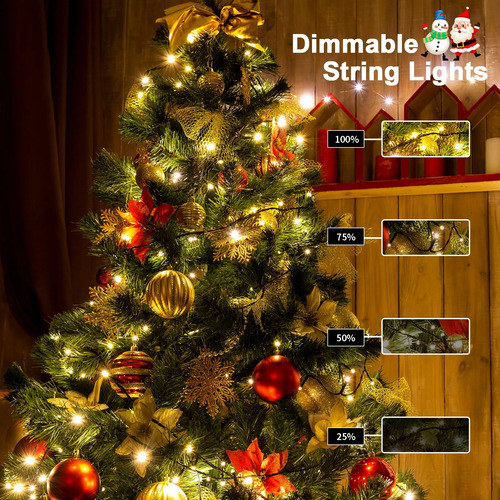 Cadena de luces de Navidad: 4 unidades de 50 luces LED de 16.5 pies. Las luces de cuerda parpadeantes crean un encantador ambiente festivo para la decoración interior y exterior