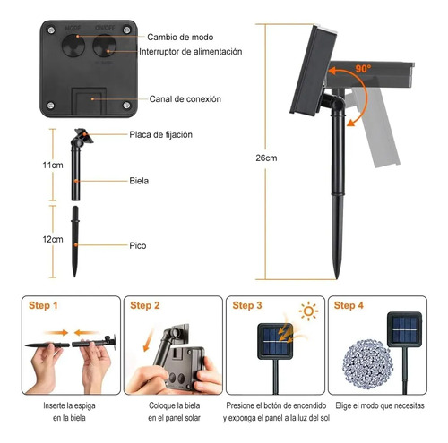 PracticabilidadPuede cargarse de 8 a 12 horas durante el día y puede funcionar automáticamente durante 8 horas por la noche. Los paneles solares y las pilas deben colocarse en un lugar soleado. 72 refleja la larga cadena de luces es muy adecuada para serpentear en árboles o pasillos, jardines, terrazas, césped, vallas, porches, techos, Navidad, bodas, vacaciones, fiestas, etc. Para crear un ambiente cálido, alegre y festivo