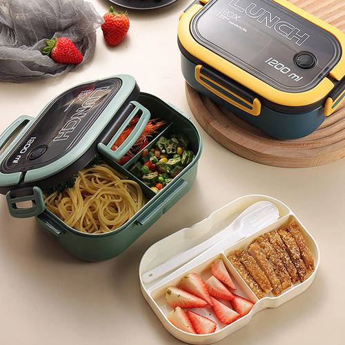 Portátil: la fiambrera tiene una gran capacidad de 1200 ml, lo que la hace fácil de transportar y adecuada para estudiantes y trabajadores de oficina.