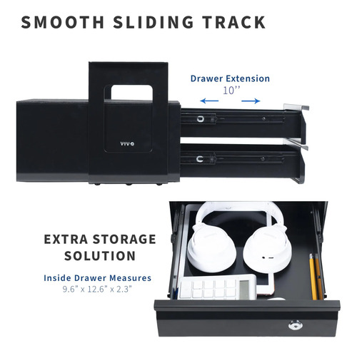 VIVO – Cajones deslizantes dobles apilados para debajo del computadora de 13 pulgadas con bloqueo, organizador seguro de almacenamiento para oficina en casa, negro, computadora AC03L-2B