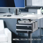 Almacenamiento apilado debajo del computadora: sistema de cajones de acero resistente (2 cajones) se monta en la parte inferior de tu computadora (al menos 3/4 pulgadas de grosor) y proporciona almacenamiento adicional para materiales de trabajo, utensilios de escritura, dispositivos electrónicos, artículos personales y mucho más
