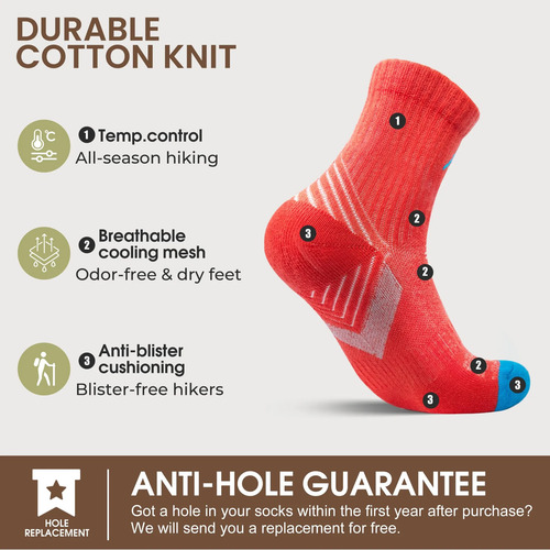 Cómodo: la tecnología de punto de calibre fino hace que los calcetines de senderismo sean súper cómodos, transpirables y de secado rápido. Gran elasticidad y la parte superior mantiene los calcetines de cuarto de forma segura en la pantorrilla.