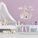 PLIGREAT – Calcomanías de pared de castillo de princesa, calcomanía de pared de castillo de hadas de nubes, vinilo grande extraíble para decoración de pared para niñas, recámara, cuarto de bebé, sala