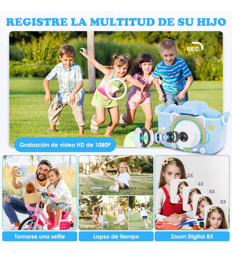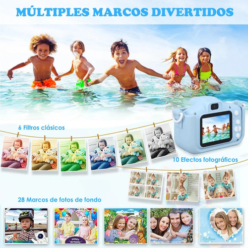 Cámara multifuncional para niños: La nueva cámara y videocámaras para niños vienen con más funciones que incluyen captura de fotos, grabación de video, reproducción, reproductor de música, juego y ajuste de fecha. Viene con 5 juegos, 28 tipos de selecciones de escenas, 6 filtros de color y 10 efectos fotográficos, deja que nuestros hijos experimenten la diversión de múltiples modos de toma.