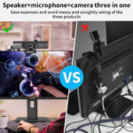 Cámara web 3 en 1: cámara web HD y micrófono estéreo digital y altavoces claros, uno es suficiente para transmisión/OBS/juegos/FaceTime.