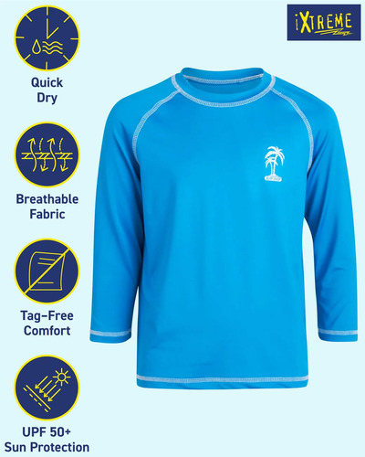 iXtreme – Camisetas de protección contra erupciones para niños, paquete de 2 camisetas de natación con protección solar y arena de secado rápido para niños (5-18)