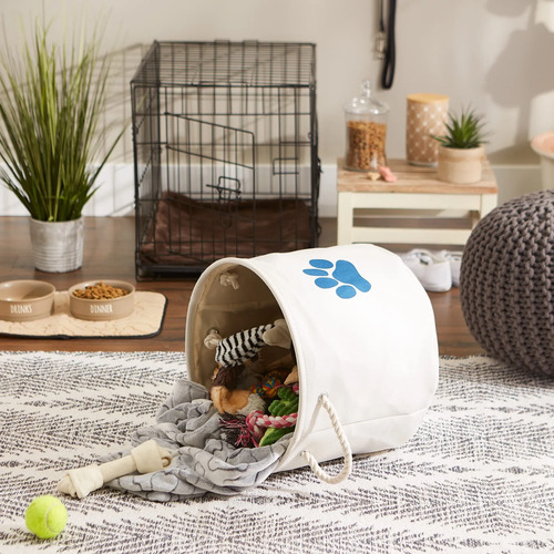DII Bone Dry Pet Toy and Accessory Storage Bin, Collapsible Organizer Storage Basket for Home Décor, Pet Toy, Blankets, Leashes and Food, Paw Off-Blanco, Round Mediano