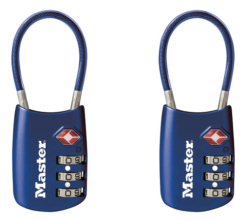 Master Lock Blue Set Your Own Combination TSA Approved Lock, candado con cierre de viaje es perfecto para maletas, bolsos o mochilas, paquete de 2, 4688BLUEC2