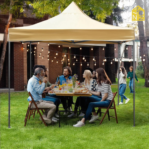Lunor – Carpa Plegable Impermeable 3×3 m, Toldo de Acero Reforzado para Exterior con Alturas Ajustables, Color Beige, Protección Solar UV para Jardín, Terraza y Eventos