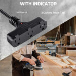 3 Tomas de Tierra con Triple Grifo y Luz Indicadora La coleta de triple grifo a tierra te permite alimentar varios aparatos simultáneamente y maximizar el uso de regletas y tomas de pared el indicador se ilumina cuando el cable está alimentado para que sepas que el carrete de cable eléctrico está listo para usar
