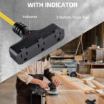 3 Tomas de Tierra con Triple Grifo y Luz Indicadora La coleta de triple grifo a tierra te permite alimentar varios aparatos simultáneamente y maximizar el uso de regletas y tomas de pared el indicador se ilumina cuando el cable está alimentado para que sepas que el carrete de cable eléctrico está listo para usar