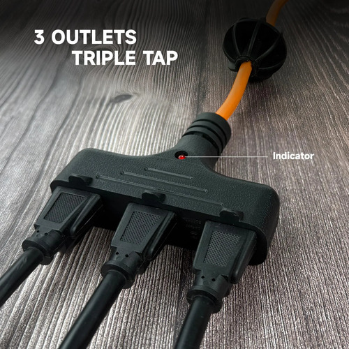 Cable de alimentación de calibre 16/3C de 30 pies. La longitud del carrete del cable de extensión es de 30 pies. Puede soportar hasta tres dispositivos que funcionan al mismo tiempo y es más duradero. La potencia máxima nominal es 125 V/1250 W/60 Hz.