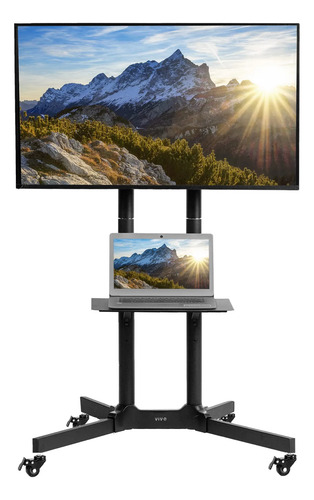 Carrito móvil – La base de 35.4 x 26 pulgadas cuenta con 4 ruedas que proporcionan una movilidad suave tanto en suelos de madera dura como en alfombras. Todas las ruedas se pueden bloquear para que el carrito esté estacionario cuando lo desee. Incluye un estante de utilidad con abrazadera para reproductores de DVD, dispositivos de transmisión y más (el estante soporta hasta 10 libras).