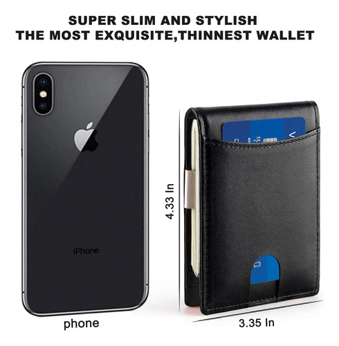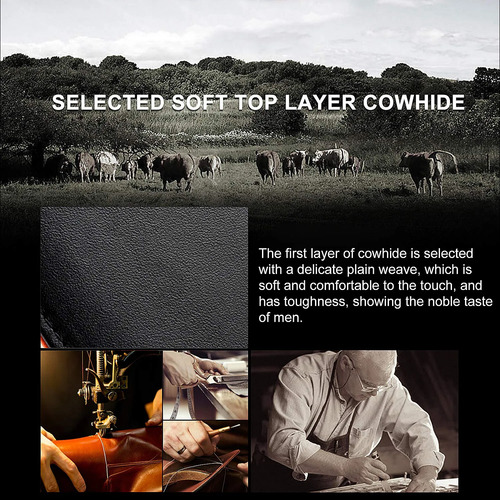 Carteras para Hombre RFID Bloquean de Doble Pliegue Delgado Genuino Billetera de Cuero para Hombres con Ranura para Tarjeta de Crédito en La ventana con ID De bolsillo