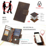 Hiram Cartera para pasaporte de viaje familiar con RFID, porta pasaportes de cuero auténtico, portátil y multifuncional, cierre a presión, protección RFID, marrón sólido