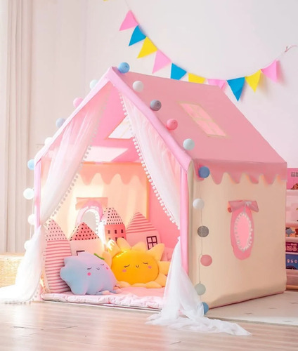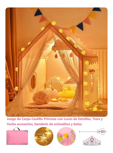 Casa de Campaña para NiñasInspirada por los castillos en el cuento de hadas, esta hermosa y extraordinaria tienda de Princess Palace (Castillo de Princesa con Luz de Estrellas, Diadema y Cetro ) puede ayudar a cumplir el sueño de la princesa de cada niña. Esta carpa de tamaño considerable puede alojar hasta 4-5 niños al mismo tiempo.