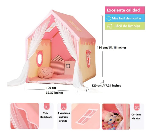 Bonita y grande: Esta es la tienda de campaña de juego más bonita, de 100x120x130cm/39.37×47.24×51.13 inches, de tejido sólido y malla suave, que proporciona un espacio privado y relajado para los niños, y está hecha de tafetán de poliéster de alta calidad, que también es muy cómodo, duradero y fácil de limpiar.