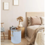 Cesta de almacenamiento alta con asas: Esta linda cesta alta redonda de cuerda está diseñada con asas largas y resistentes, lo que la hace fácil de mover. Como la cesta de almacenamiento de ropa está hecha de suave cuerda de algodón, no tiene bordes afilados y no rayará tus muebles o piso.