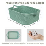 Cesta de almacenamiento de cuerda de algodón tejida con asas para organizar estantes, clóset, gatos, perros, mascotas, cestas de juguetes decorativas, rectangulares, cesta de regalo vacía