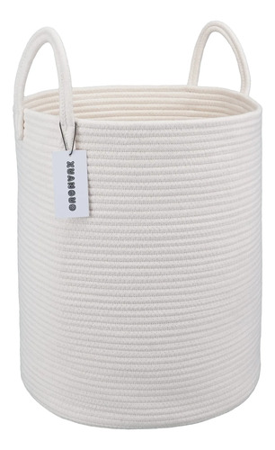Cesta de cuerda de algodón para ropa decorativa tejida para sala de estar, recámara, cestas de cuerda alta bohemias para manta, juguetes, bebé, bebé, cesta grande color blanco, GLB-00000