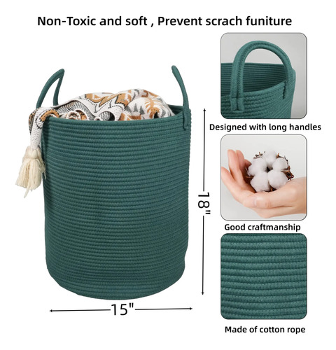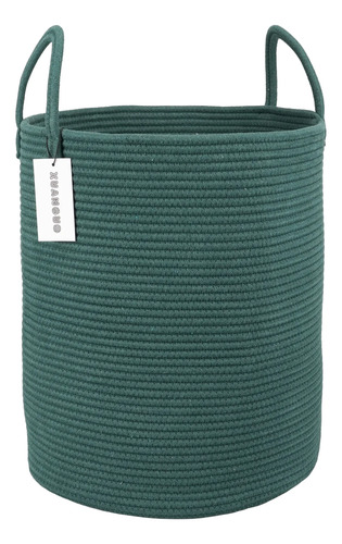 Cesta de cuerda de algodón para ropa, canasta tejida de almacenamiento, para sala de estar, recámara, guardería, cesta de cuerda alta bohemia para mantas, juguetes, grande, verde oscuro