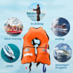 Flotación superior: nuestros chalecos salvavidas cuentan con una sólida calificación de flotabilidad de 150N, soporta pesos de hasta 130 kg para acomodar tanto a adultos como a niños. Este equipo de seguridad fiable es esencial para garantizar tu protección en entornos de agua. Cilindros de gas no incluidos.