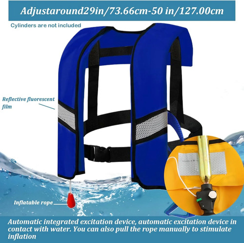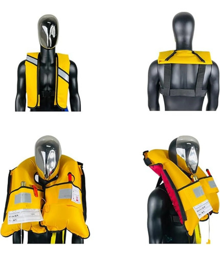 Chaleco salvavidas inflable automático 150N, chaleco de natación de nailon ajustable con inflado de CO2, tiras reflectantes y hebilla de seguridad